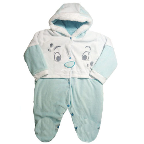 Комбинезон с закрытыми ножками, с капюшоном, с кнопочками спереди и между ножек.